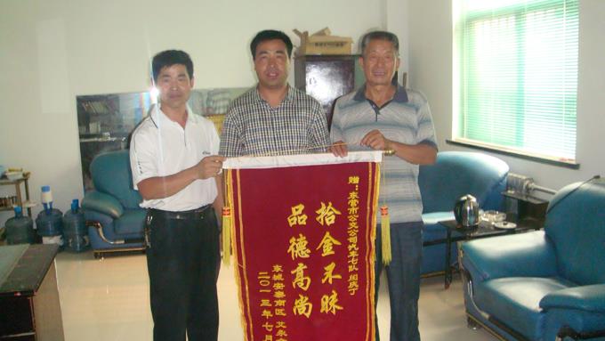 7月6日下午,市公交公司汽車七隊迎來一位老大爺,一手拿錦旗,一手提著沉甸甸的禮物,來到車隊領(lǐng)導(dǎo)辦公室,感謝拾金不昧的公交車駕駛員閔慶丁師傅。