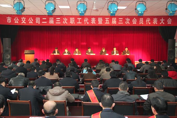 2013年2月27日,市公交公司隆重召開了二屆三次職工代表暨五屆三次會員代表大會。公司領(lǐng)導(dǎo)朱新民、李學(xué)忠、趙龍、崔磊、劉海、劉樂華、孫紅光及74名代表參加了會議。