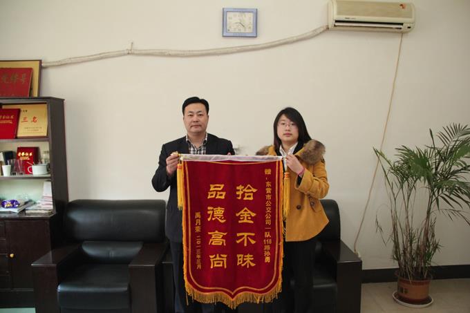 4月9日上午,康源律師事務(wù)所的禹月榮女士拿著一面寫有“拾金不昧、品德高尚”的錦旗來到市公交公司汽車一隊(duì),感謝車隊(duì)駕駛員孫勇師傅的高尚品德。據(jù)車隊(duì)了解得知,4月4日,禹月榮女士乘坐孫勇師傅駕駛的118路去上班,上班以后發(fā)現(xiàn)裝有重要文件的拎包不見了,她心急如焚,當(dāng)時(shí)就癱坐在地上,因?yàn)榘锩嫜b有五個(gè)檔案袋,卷中裝有重要的訴訟材料,其中很多資料無法彌補(bǔ),后果不堪設(shè)想。