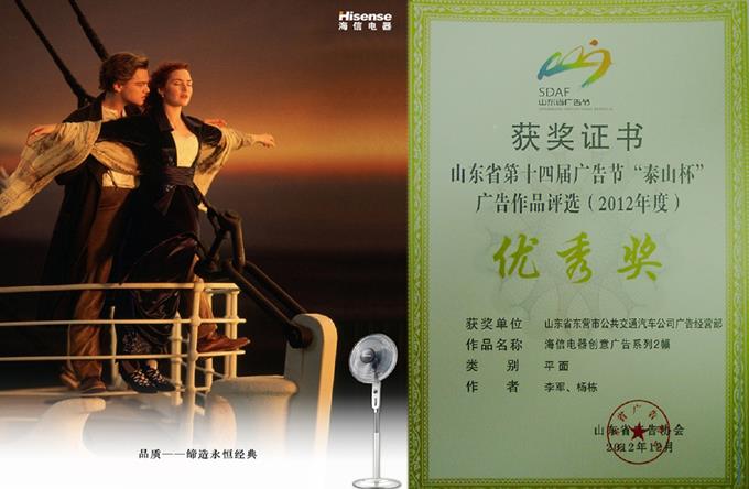 在第四屆山東文化創(chuàng)意產業(yè)博覽交易會廣告創(chuàng)意大賽中,市公交公司廣告部張瑞文設計的作品《凳子》獲得優(yōu)秀獎;在山東省第十四屆廣告節(jié)“泰山杯”廣告作品評選中,張瑞文設計的作品《老婆同時看上啦》以及楊棟設計的海信電器創(chuàng)意廣告系列作品同時獲得優(yōu)秀獎。