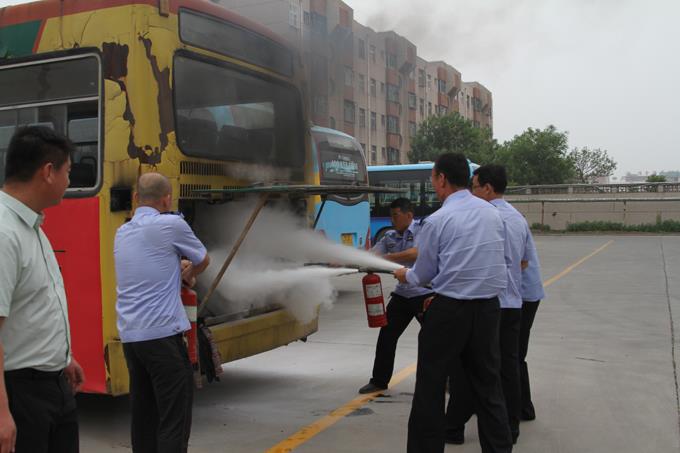 本次演練模擬一停駛公交車發(fā)動機起火,消防人員手提滅火器進行滅火,最終火災被撲滅,場地清理干凈滅火結束。演練的開展使員工對站位、滅火順序等進行了進一步鞏固,為今后工作中處理突發(fā)事件奠定了基礎,同時總結了經(jīng)驗,找出了不足,將火災防患于未然。