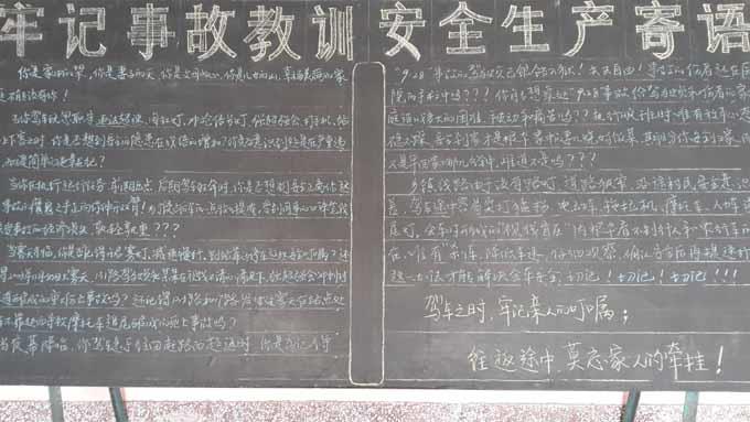 近日,市公交公司汽車三隊(duì)為貫徹落實(shí)好公司第四季度安委會(huì)的會(huì)議精神,做好駕駛員工安全教育,進(jìn)一步抓好車隊(duì)安全生產(chǎn)工作,一是針對(duì)鄉(xiāng)鎮(zhèn)線路的營(yíng)運(yùn)特點(diǎn),專門出了一期“安全生產(chǎn)黑板報(bào)”,二是專門制作了一幅以“注重安全,關(guān)愛(ài)生命”為主題的展板,擺放到大廳里,以此警醒和告誡廣大一線駕駛員,行車中要把安全放在首位,牢記遵紀(jì)守法,按章行車、謹(jǐn)慎駕駛、確保安全。