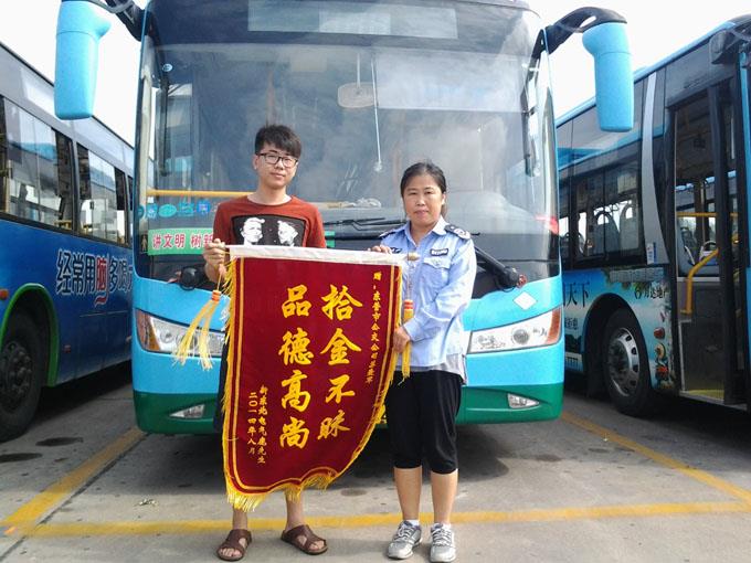 7月31日,鹿先生不慎將錢包遺漏在164路公交車上,于是急忙來(lái)到車隊(duì)尋找,該路駕駛員蘇愛軍將裝有1500元現(xiàn)金、身份證、銀行卡和工作證的錢包物歸原主,鹿先生非常感動(dòng),送來(lái)錦旗表示感謝。