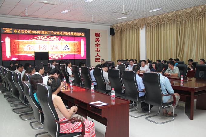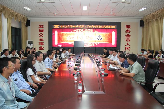 8月28日晚,市公交公司舉行了2014年度職工子女高考錄取生獎勵座談會,為今年高考錄取的職工子女進(jìn)行獎勵。公司經(jīng)理朱新民出席,受獎勵的職工及子女參加。