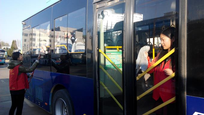 來自東營市職業(yè)學(xué)校會(huì)計(jì)學(xué)院的大學(xué)生和市公交公司汽車一隊(duì)職工共計(jì)24人,分兩個(gè)小組,一組乘坐公交車上路為特需乘客服務(wù),幫助疏導(dǎo)乘客,另外一組幫助駕駛員擦拭公交車,清掃車廂衛(wèi)生。大家工作起來井然有序,有條不紊,尤其活躍在車廂為乘客服務(wù)的志愿者們,更是得到了乘客的一致好評(píng),成為公交車上一道靚麗的風(fēng)景。