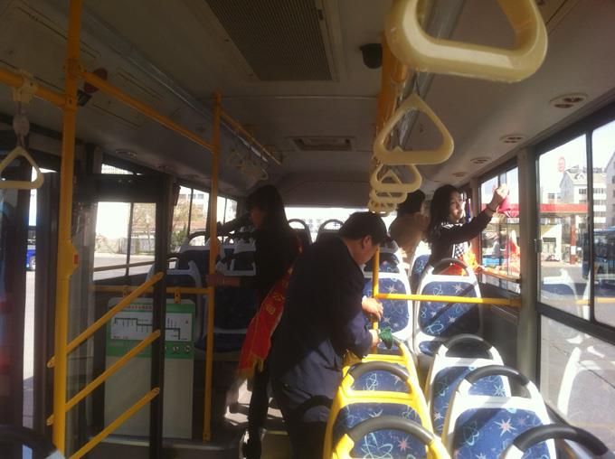 來(lái)自東營(yíng)市職業(yè)學(xué)院會(huì)計(jì)學(xué)院的22名大學(xué)生和汽車一隊(duì)職工共計(jì)34人,分成兩個(gè)小組,一組乘坐103路公交車幫助疏導(dǎo)乘客,為特需乘客服務(wù);一組幫助駕駛員打掃車輛衛(wèi)生,清潔服務(wù)設(shè)施。本次活動(dòng)受到乘客們的廣泛好評(píng),同時(shí)也提升了大家的奉獻(xiàn)意識(shí)和社會(huì)責(zé)任感,進(jìn)一步弘揚(yáng)了雷鋒精神,培養(yǎng)了大家關(guān)愛他人、服務(wù)社會(huì)的優(yōu)良品質(zhì)。