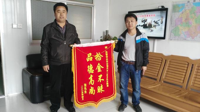 近日,市民張先生手執(zhí)一面寫(xiě)有“拾金不昧,品德高尚”的錦旗來(lái)到東營(yíng)市公交公司汽車(chē)二隊(duì),感謝劉風(fēng)澤師傅拾金不昧的高尚品德。