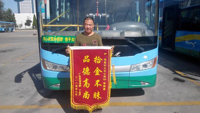 近日,廣北農(nóng)場(chǎng)的丁友戶女士拿著一面寫(xiě)有“拾金不昧、品德高尚”的錦旗來(lái)到市公交公司汽車(chē)一隊(duì),感謝車(chē)隊(duì)駕駛員李左田師傅的高尚品德。據(jù)車(chē)隊(duì)了解得知,9月28日上午,丁友戶女士乘坐李左田師傅駕駛的123路公交車(chē)去東城辦事,下車(chē)以后發(fā)現(xiàn)裝有現(xiàn)金(1600元)、手機(jī)和銀行卡等物品的拎包不見(jiàn)了,她心急如焚。然后抱著試試看的想法來(lái)到公交公司汽車(chē)一隊(duì)調(diào)度室門(mén)口,正好遇到拿著包準(zhǔn)備上交車(chē)隊(duì)的李左田師傅。原來(lái),李師傅利用班次間隙打掃車(chē)內(nèi)衛(wèi)生時(shí),無(wú)意間發(fā)現(xiàn)座椅上有個(gè)包,心想丟包的乘客一定很著急,便放下手里的活,拿著包直奔車(chē)隊(duì)辦公室,碰巧遇到前來(lái)尋包的丁女士。車(chē)隊(duì)及時(shí)核對(duì)情況后,將該拎包物歸原主。