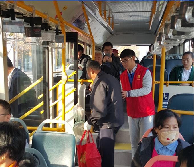為進(jìn)一步營(yíng)造文明城市復(fù)核迎測(cè)的濃厚氛圍,弘揚(yáng)“奉獻(xiàn)、友愛、互助、進(jìn)步”的志愿服務(wù)精神,踐行常態(tài)化志愿服務(wù)機(jī)制,市公交公司于10月31日上午聯(lián)合職業(yè)學(xué)院開展了志愿服務(wù)活動(dòng)。志愿服務(wù)活動(dòng)主要是引導(dǎo)乘客有序乘車,幫助老弱病殘?jiān)械忍厥獬丝蛢?yōu)先乘車及主動(dòng)為老弱病殘?jiān)凶屪虺珜?dǎo)乘客保持車廂衛(wèi)生以及引導(dǎo)公交車輛規(guī)范停靠等等。