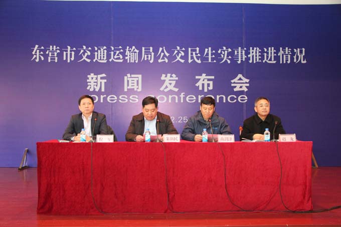 12月25日上午9點30分,東營市交通運輸局公交民生實事新聞發(fā)布會在市公交公司舉行,主要是通報2016年度公交各項民生實事工作的推進情況。東營市交通運輸局黨委委員、副局長燕渭澤、東營市公交公司副經(jīng)理趙龍、北京中航訊股份科技有限公司總經(jīng)理倪軍以及來自東營電視臺、東營日報社、大眾網(wǎng)、齊魯晚報、黃河口晚刊等9家新聞媒體記者出席了新聞發(fā)布會。會議由東營市公交公司黨委書記、經(jīng)理朱新民主持。
