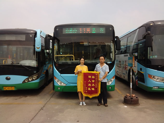 迎著蒙蒙細(xì)雨,家住陽光100小區(qū)的張女士拿著一面寫有“拾金不昧、助人為樂”的錦旗來到市公交公司汽車一隊駐地,感謝公交車駕駛員藍(lán)新啟師傅拾金不昧的高尚品德。