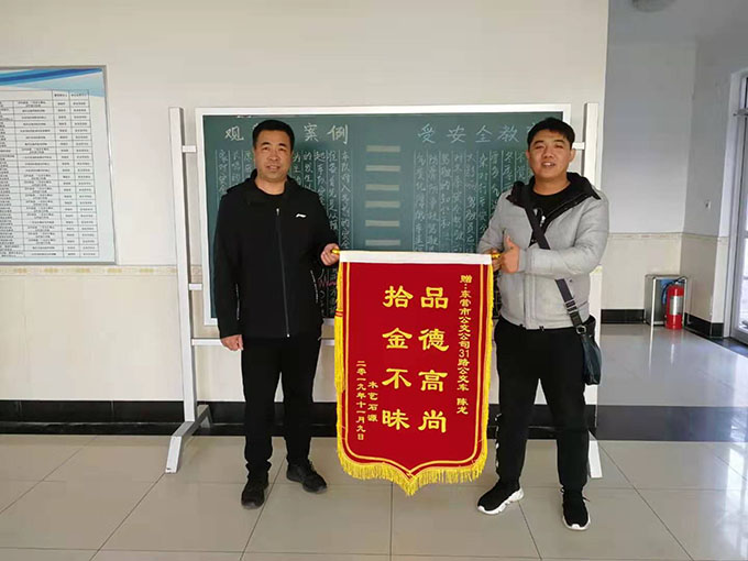 2019年11月18日下午,公交公司汽車(chē)三隊(duì)來(lái)了一名手拿錦旗的年輕小伙,說(shuō)是要對(duì)31路駕駛員陳龍拾金不昧的行為表示感謝。