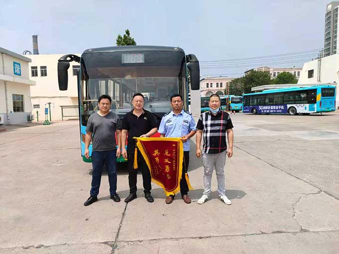 7月11日上午,市民王云峰和家人帶著繡有“見(jiàn)義勇為、英勇救人”的錦旗來(lái)到市公交公司汽車(chē)一隊(duì),感謝103路駕駛員商光亮的救人之舉。