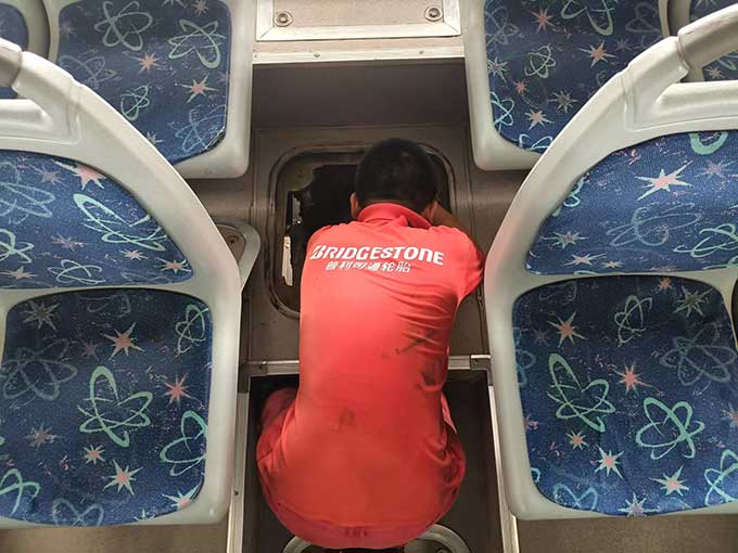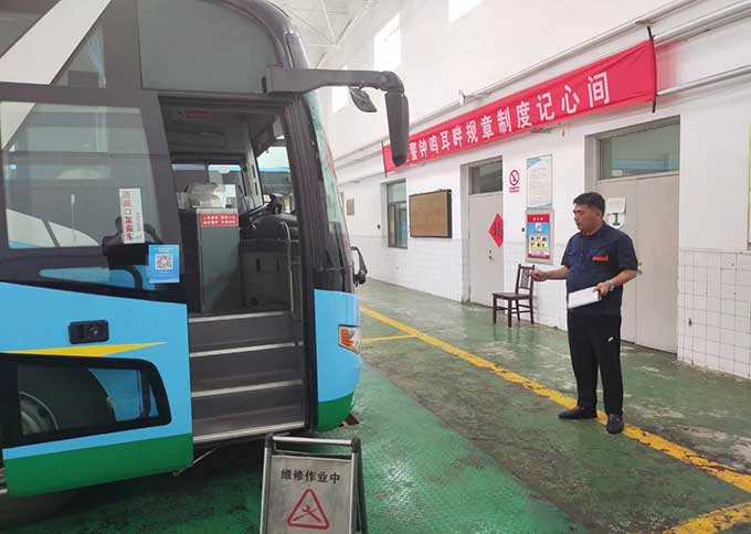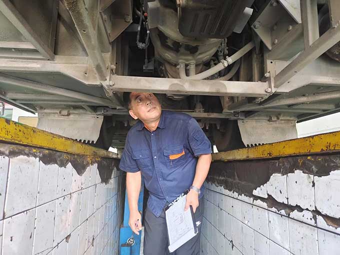 驕陽似火,汗水流淌,沾了頭發(fā),濕了臉頰,卻阻擋不了他們對工作的熱情,這是一種承諾,更是一種責(zé)任與擔(dān)當(dāng)。相比爬車頂維修空調(diào)的辛苦,鉆地溝也的滋味更不好受。不足一米深的地溝里,不僅悶熱,而且容易沾滿油垢。背靠堅硬的水泥瓷磚、頭頂公交車底盤,承受車輛部件散發(fā)的熱量,猶如鉆進(jìn)烤箱。狹小的空間內(nèi),悶熱的空氣彌漫著刺鼻的機油味,底盤零部件上的塵土和油污隨著維修時的觸碰不時地落在頭上、脖子里、衣服上。為了排查故障,維修職工需要一直貓著腰、歪著頭,手上、身上滿是機油和污垢。幾分鐘的時間,豆大的汗珠就成串往下掉,工作服更是緊緊地“貼”在了身上。有時候,要檢修的部位比較靠里,在車底也無法觸及,只能從車廂里打開后座,順著幾十厘米直徑的小洞‘鉆進(jìn)去’,基本上就是上半身在發(fā)動艙內(nèi),下半向在車廂內(nèi)。盡管如此,保修職工仍然憑借頑強的斗志和精益求精的工匠意識,克服重重困難,完成各項保修任務(wù)。