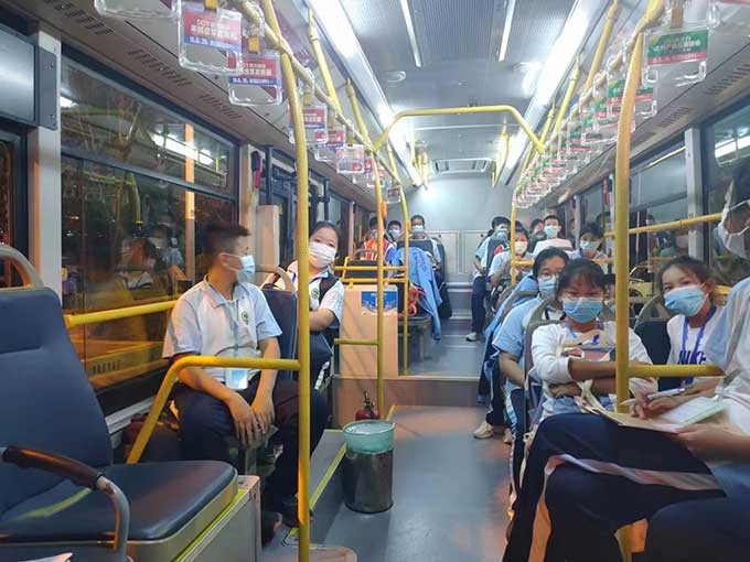 為平穩(wěn)有序開學保駕護航,精準對接學生家長需求,努力營造家長放心、學生滿意、社會認可的安全出行環(huán)境,東營公交依托東營智慧公交系統(tǒng)推出“定制公交”助學服務,助學服務自上線以來,深受學生家長的喜愛。2022年8月累計收到通學服務相關需求接近萬條,東營公交快速響應,根據(jù)前期收集到的學生通學出行需求,統(tǒng)籌整合公交運力資源,規(guī)劃開通30條助學“定制公交”線路,71條“專線公交”,每日安排運行262個班次,點對點服務學生出行,助力學生直達校園,全力保障學生出行。同時為更好地守護學子出行,公交駕駛員發(fā)車前均會進行酒測和體溫檢測,對運營車輛進行全面檢查,車輛返回場站進行消毒清理,在全面做好各項防疫措施的同時,確保學生們的乘車安全。