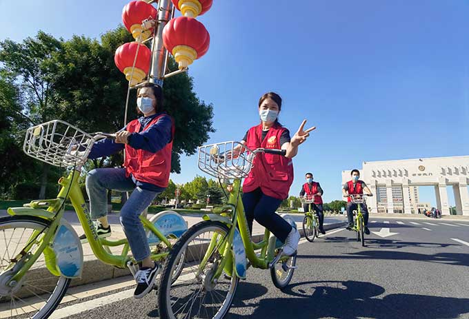 近日,交通運輸部、公安部、國家機(jī)關(guān)事務(wù)管理局、中華全國總工會等聯(lián)合印發(fā)通知,定于9月份開展2022年綠色出行宣傳月,9月19日至25日開展公交出行宣傳周活動。本次活動以“綠色出行,你我同行”為主題。19日下午,一群身著紅色志愿馬甲的志愿者們從市政廣場新世紀(jì)門出發(fā),沿勝利大街一路向南,經(jīng)過“最美一條街”濰河路,最終從膠州路返回市公交公司,志愿者們通過這一路的騎行方式,做了綠色出行的踐行者和傳播者。