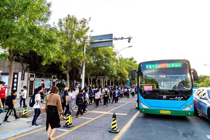 學(xué)生乘坐助學(xué)公交,也讓家長們更省心了?!耙郧安还苁球T車還是開車,高峰時(shí)段都不是很方便?!睂W(xué)生家長賈先生說,尤其是今年學(xué)校在原址新建,“堵車的情況更多了,為了孩子上學(xué)不遲到、大人上班不遲到,只能提前二十多分鐘將孩子送到學(xué)校。”