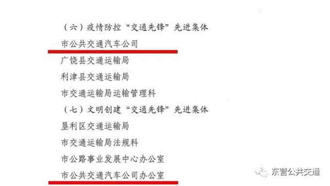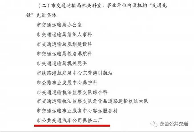 會(huì)上,加快建設(shè)交通強(qiáng)國(guó)山東示范區(qū)“東營(yíng)樣板”工作機(jī)制辦公室印發(fā)了2022年度全市交通運(yùn)輸工作交通先鋒先進(jìn)集體及先進(jìn)個(gè)人表彰決定。市公交公司、市公交公司辦公室、市公交公司保修二廠獲得交通先鋒先進(jìn)集體榮譽(yù)稱號(hào),2名同志獲得交通先鋒先進(jìn)個(gè)人榮譽(yù)稱號(hào)。