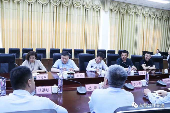2023年5月11日下午,利津縣交通運(yùn)輸局一行5人到市公交公司考察交流。市公交公司黨委書記趙龍同志主持座談會(huì),黨委委員、副經(jīng)理景洪培,黨委委員、計(jì)財(cái)科科長(zhǎng)李大安以及相關(guān)科室負(fù)責(zé)同志參加交流會(huì)。