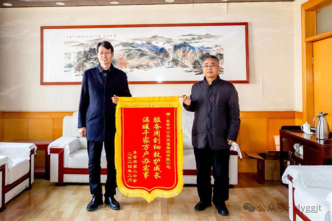 2024年3月6日上午,市二中黨委副書記、校長馬占武一行3人來到市公交集團,將一面寫有“服務(wù)周到細致護成長,溫暖千家萬戶辦實事” 的錦旗送到集團公司黨委書記趙龍同志手中,衷心感謝集團公司一直以來為市二中師生通學出行提供的安全、周到、細致的服務(wù)。
