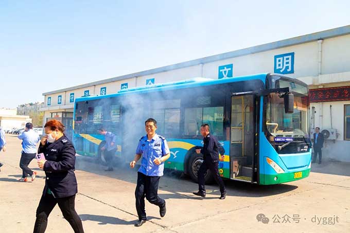 演練重點圍繞公交車、旅游客車發(fā)生火災應急處置、消防器材使用、滅火演練三方面進行。演練設置了滅火器、應急錘、門、窗等應急設施的使用操作、發(fā)生火災時人員疏散、應急逃生、報告等流程環(huán)節(jié),突出了演練的實戰(zhàn)性和實效性。