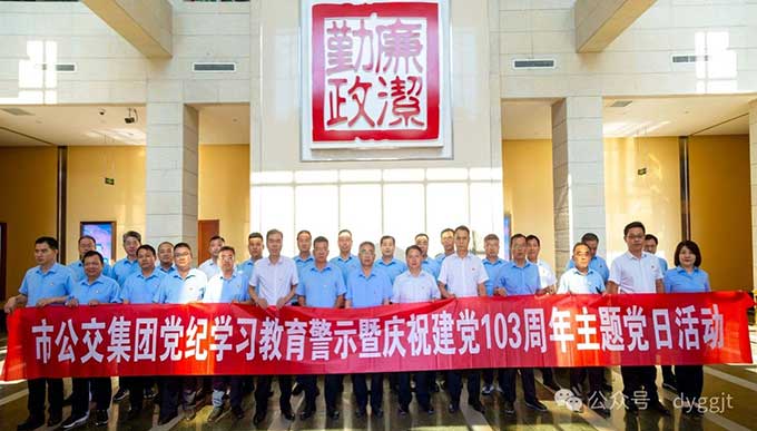 為慶祝建黨103周年,縱深推進(jìn)全面從嚴(yán)治黨,努力推動(dòng)黨紀(jì)學(xué)習(xí)教育走深走實(shí),教育引導(dǎo)廣大黨員干部堅(jiān)定理想信念,牢記使命宗旨,筑牢紀(jì)法底線,2024年6月27日下午,市公交集團(tuán)組織黨員干部赴市廉政教育中心開展黨紀(jì)學(xué)習(xí)教育現(xiàn)場(chǎng)警示暨慶祝建黨103周年主題黨日活動(dòng),集團(tuán)公司黨委成員、各支部書記及各部門單位主要負(fù)責(zé)同志參加。