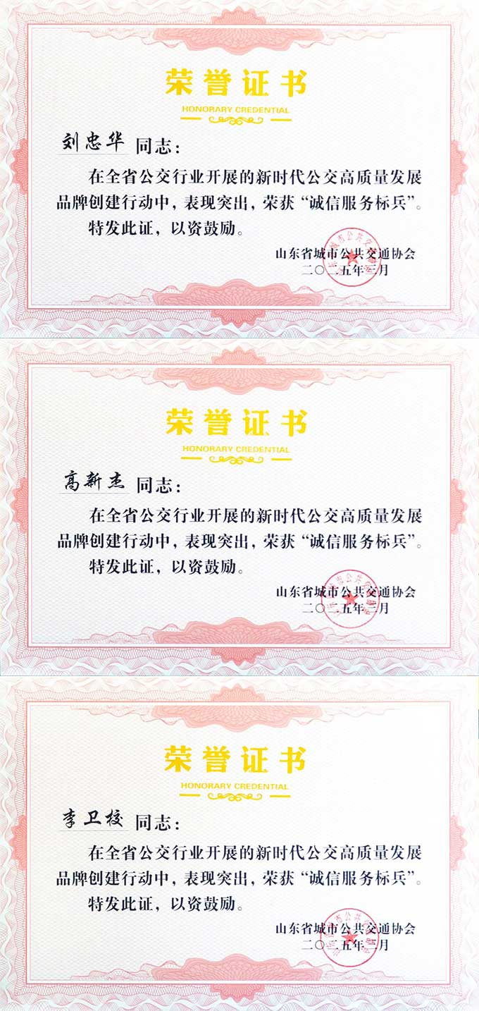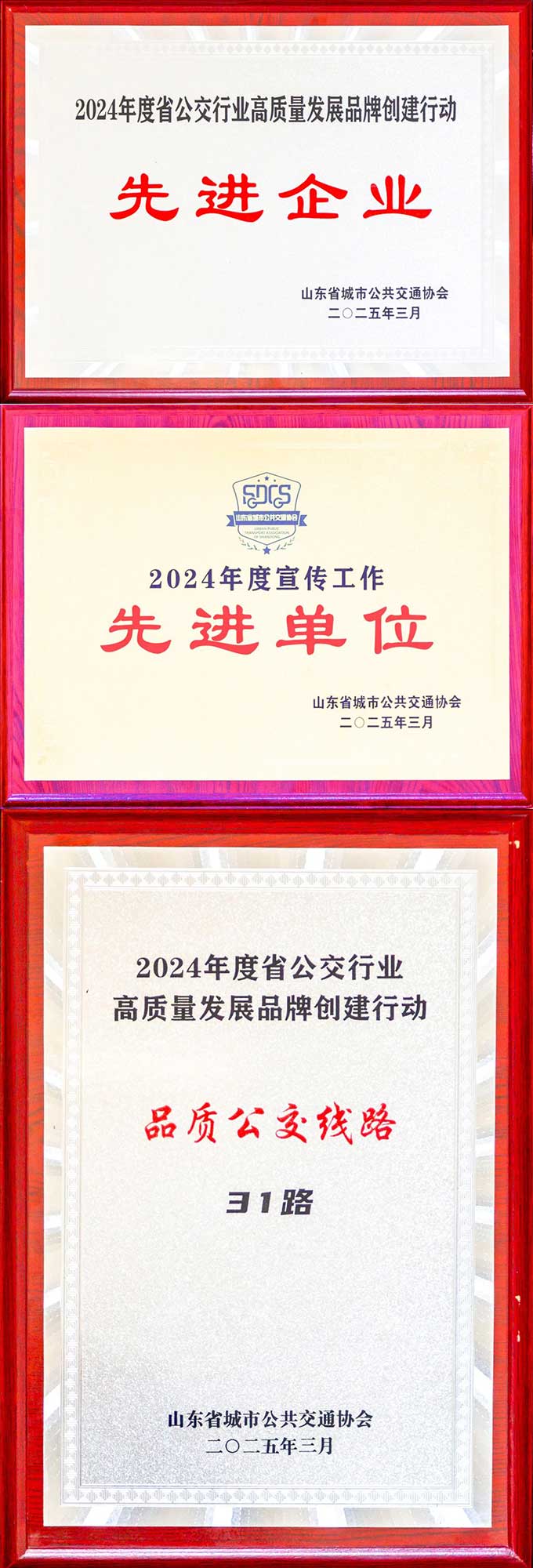 會(huì)上,東營(yíng)市公交集團(tuán)獲得2024年度全省公交行業(yè)宣傳工作先進(jìn)單位、全省公交行業(yè)高質(zhì)量發(fā)展品牌創(chuàng)建行動(dòng)先進(jìn)企業(yè)等榮譽(yù)稱號(hào),汽車三隊(duì)31路公交線路被評(píng)為2024年度全省公交行業(yè)高質(zhì)量發(fā)展品牌創(chuàng)建行動(dòng)“品質(zhì)公交線路”稱號(hào),李衛(wèi)校、高新杰、劉忠華等3名同志被評(píng)為全省公交行業(yè)高質(zhì)量發(fā)展品牌創(chuàng)建行動(dòng)“誠(chéng)信服務(wù)標(biāo)兵”。