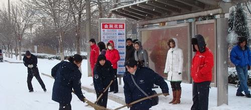汽車(chē)七隊(duì)職工到公交站點(diǎn)清掃積雪