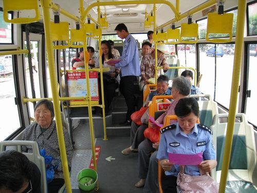汽車七隊8路車組上路發(fā)放消防宣傳材料
