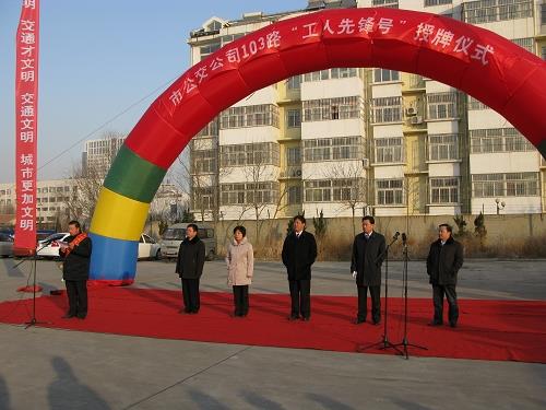 市總工會(huì)、市交通局為市公交公司103路車(chē)組隆重舉行工人先鋒號(hào)授牌儀式