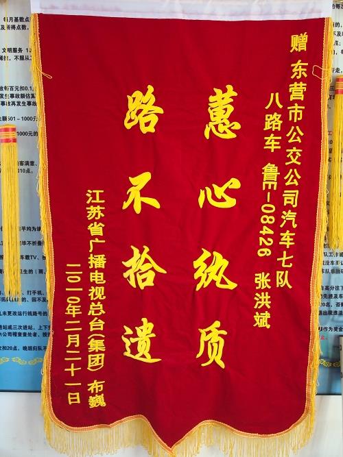 原來(lái),2月20日,初次來(lái)東營(yíng)走親訪友的失主布巍小酌后準(zhǔn)備返程,不小心將手提包丟在8路車上,內(nèi)有DV機(jī)、出國(guó)護(hù)照和工作證等物件,年后就準(zhǔn)備出國(guó)的他非常著急。經(jīng)過(guò)查詢與汽車七隊(duì)取得聯(lián)系,當(dāng)?shù)弥眯鸟{駛員張洪斌已將失物及時(shí)上交車隊(duì),失主布巍非常感動(dòng),因急于趕回單位出國(guó),沒(méi)能當(dāng)面致謝,特寄來(lái)錦旗表示謝意。