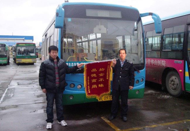 2010年12月13日上午,東營(yíng)區(qū)龍居鎮(zhèn)麻灣村孫路、趙雪冒著紛紛揚(yáng)揚(yáng)的雪花來到市公交公司汽車三隊(duì),將一面寫有“拾金不昧、品德高尚”的錦旗送到車隊(duì)領(lǐng)導(dǎo)手中,對(duì)139路駕駛員孫明軍同志表示感謝,并對(duì)公交公司培養(yǎng)出這么好的員工表示敬意。