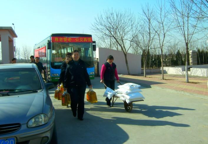 2011年3月8日,在國際勞動?jì)D女節(jié)當(dāng)天,市公交公司汽車三隊(duì)112路車組駕駛員丁文美、馬云麗、王瑞華等三人代表15位全體112路駕駛員用在公司文明服務(wù)示范線路評比活動中得來的2000元獎(jiǎng)金,購買了油、米、面等慰問品對龍居鎮(zhèn)敬老院的老人們進(jìn)行了慰問并送去了祝福,得到了老人們的熱烈歡迎。駕駛員代表丁文美表示:尊老愛幼是中華民族的傳統(tǒng)美德。我們年輕人是在老一輩人打下的基礎(chǔ)上才能過上現(xiàn)在的好日子,所以我們不能忘記各位老人們。能用這樣的方式過節(jié),我們都覺得非常有意義。
