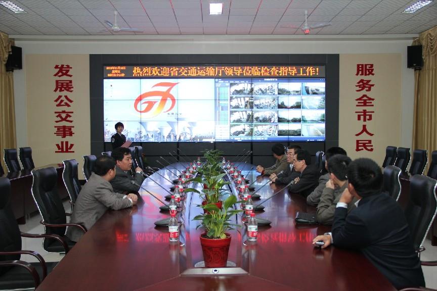 11月18日上午,省交通運(yùn)輸廳“兩保兩樹(shù)”活動(dòng)指導(dǎo)組王際遜處長(zhǎng)一行,在市交通運(yùn)輸局工會(huì)主席王愛(ài)軍、運(yùn)管處處長(zhǎng)李希俊、市公交公司經(jīng)理朱新民等有關(guān)領(lǐng)導(dǎo)的陪同下,到東營(yíng)公交智能調(diào)度指揮中心對(duì)3G視頻監(jiān)控系統(tǒng)進(jìn)行了檢查指導(dǎo)。