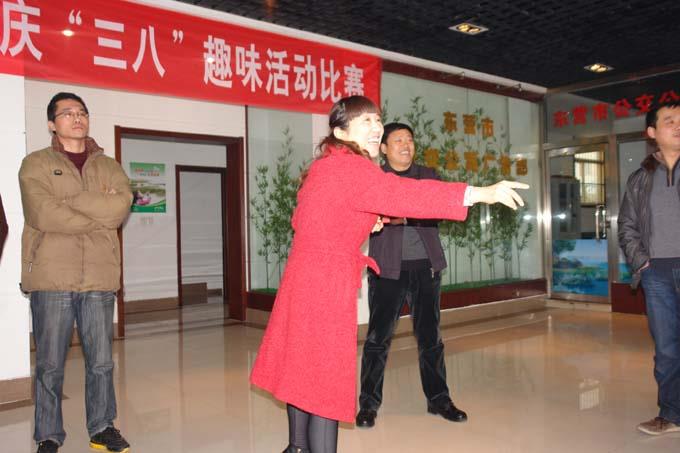 為慶祝“三八”國際勞動(dòng)?jì)D女節(jié),豐富和活躍職工文化生活,3月5日下午,市公交公司廣告部舉行了慶“三八”趣味活動(dòng)比賽。比賽設(shè)有搶凳子、夾玻璃球、吹氣球、投擲飛鏢四個(gè)項(xiàng)目。整個(gè)活動(dòng)現(xiàn)場氣氛熱烈,快樂而有趣,所有人員興致勃勃參與到各個(gè)趣味游戲當(dāng)中。大家各施其技,力爭取勝,過關(guān)的喜悅,獲勝的歡樂一次次把比賽推向高潮。