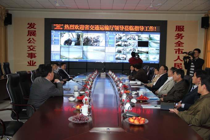 4月11日下午,省交通運(yùn)輸廳副廳長謝濤一行,在市交通運(yùn)輸局黨委書記、局長李兆君、市公路局局長王泮清、市交通運(yùn)輸局黨委副書記鄭月成、市公路局副局長董安林、市運(yùn)管處處長李??∫约笆泄还窘?jīng)理朱新民等有關(guān)領(lǐng)導(dǎo)的陪同下,到市公交公司對信息化建設(shè)進(jìn)行了實(shí)地檢查指導(dǎo)。