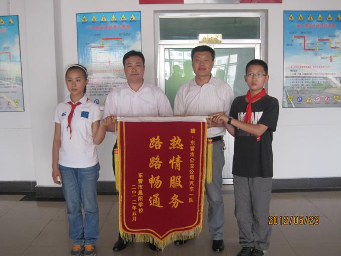 5月23日上午,市晨陽學(xué)校師生三人拿著一面寫有“熱情服務(wù)、路路暢通”的錦旗來到市公交公司汽車一隊(duì),感謝車隊(duì)在5月17至18日為期兩天的旅游包車中,為晨陽學(xué)校兩千多名師生提供的熱情、周到、優(yōu)質(zhì)的服務(wù)。對近幾年公交服務(wù)質(zhì)量的不斷提升表示稱贊,并向公交廣大干部職工表達(dá)深深的敬意。