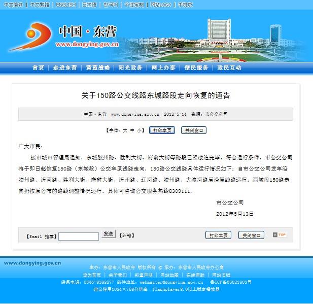 2012年5月14日東營市政府網(wǎng)站報道